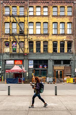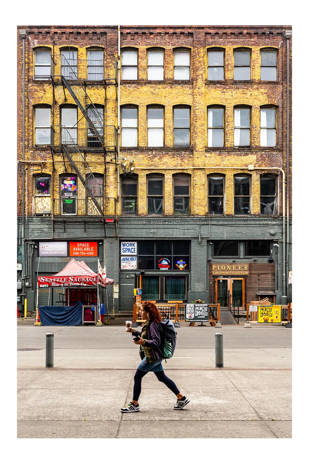the fading, chipped brick of the building in the background made for a nice setting here in the Sodo district of Seattle